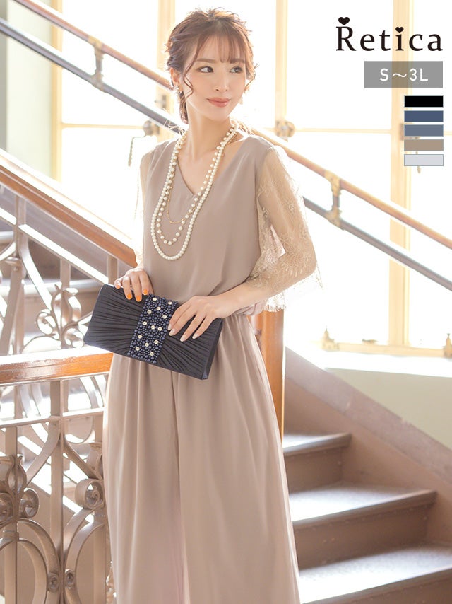5. オールインワン五分袖ワイドパンツ結婚式パーティードレス [Retica/レティカ]