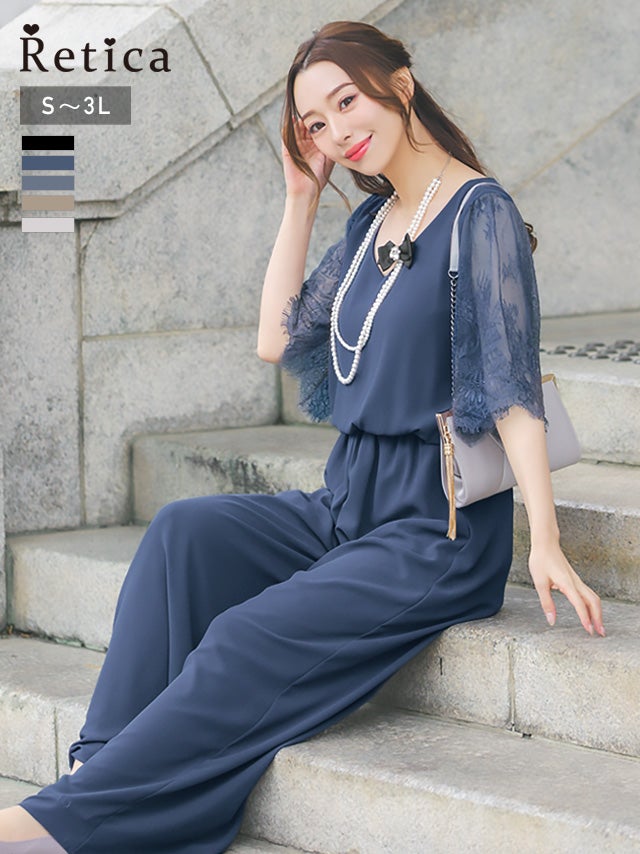 4. オールインワン五分袖ワイドパンツ結婚式パーティードレス [Retica/レティカ]