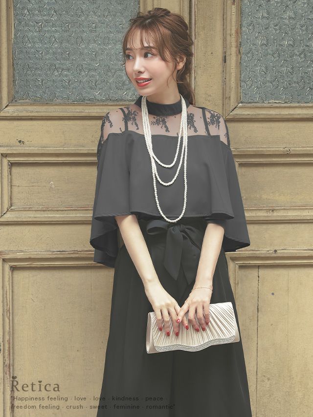 ケープスリーブを組み合わせたトレンド感溢れるセットアップドレス