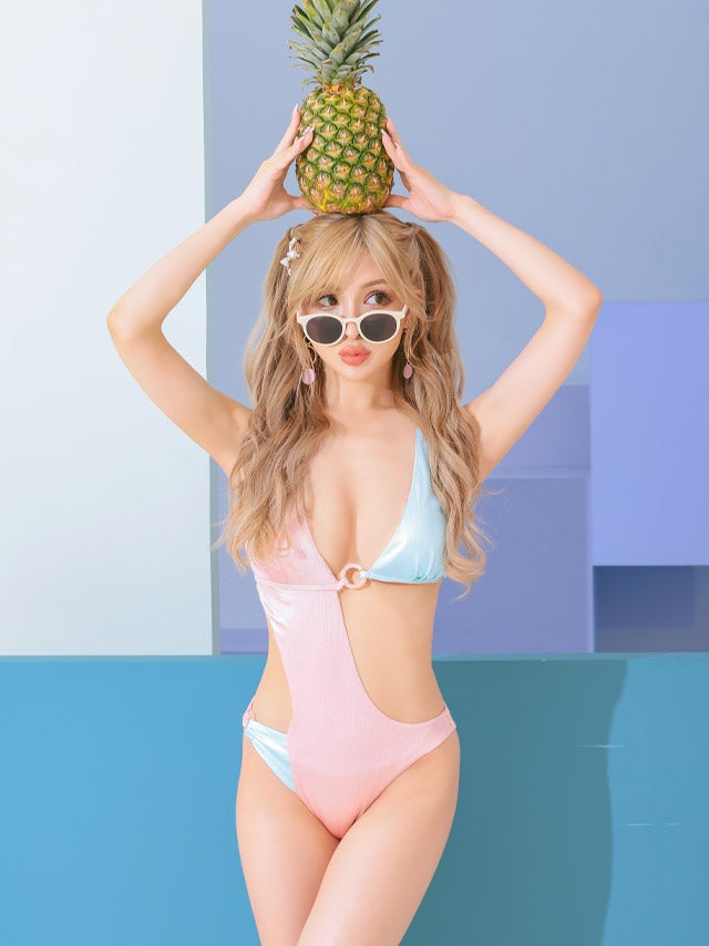 夏の太陽をキラキラ反射してお目立ち度UP♪ [水着] カットアウトリング グリッター 三角 モノキニ セクシーピンク紫 ビキニ (ゆんころ/久保七瀬着用) [tk-swy1014]