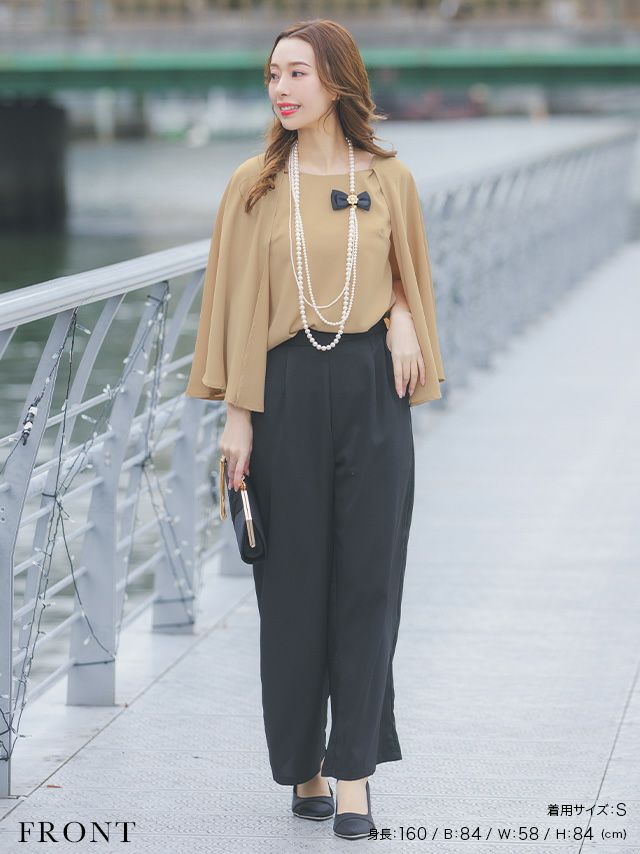 他の画像を見る 悩みがちな羽織いらず♪ SALE ツーピースボリュームケープトップスワイドパンツ二の腕カバースリーブ結婚式パーティードレス [Retica/レティカ] ¥ 15,180 ¥ 8,690 税込 お気に入りに追加