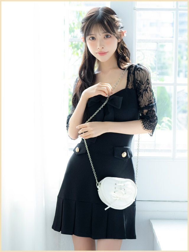 4. [SALE] ハートモチーフレースアップ2Wayハンドミニバッグ