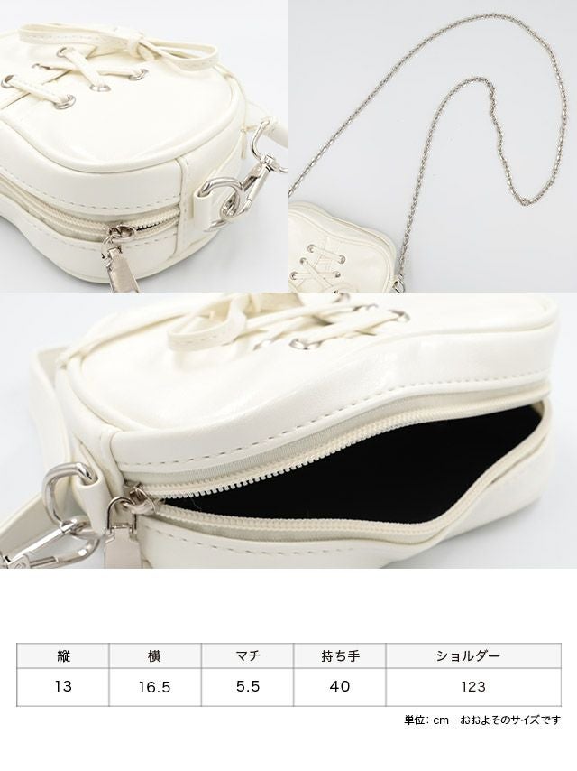 ハートモチーフレースアップ2Wayハンドミニバッグのディティール サイズ表