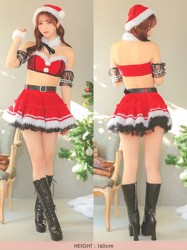 サンタコス 7点set ハートカットベアへそ出しセパレートボリュームフリルフレアスカートサンタコスプレの商品詳細