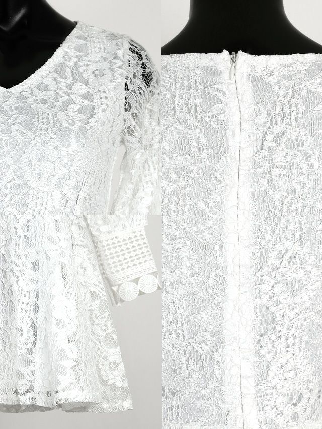 長袖総レースデザインハイウエスト切替フレアミニドレスの詳細画像1