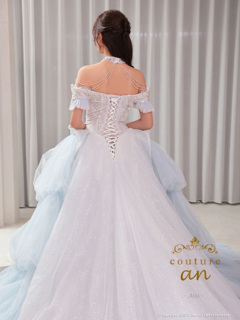 キャバドレス couture an クチュール アン 高級 オフショルダー 半袖 レース ビジュー ラメ チュール フリル 刺繍 レース バースデー プリンセスライン キャバドレス