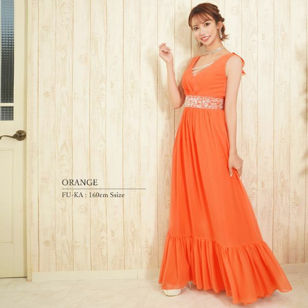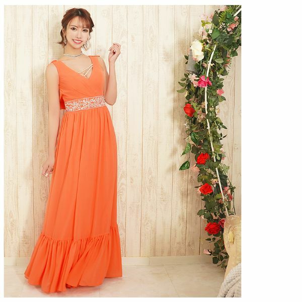 5. [Angel-R/エンジェルアール] 高級ノースリーブウエストビジューバックオープンフリルAラインロングドレス