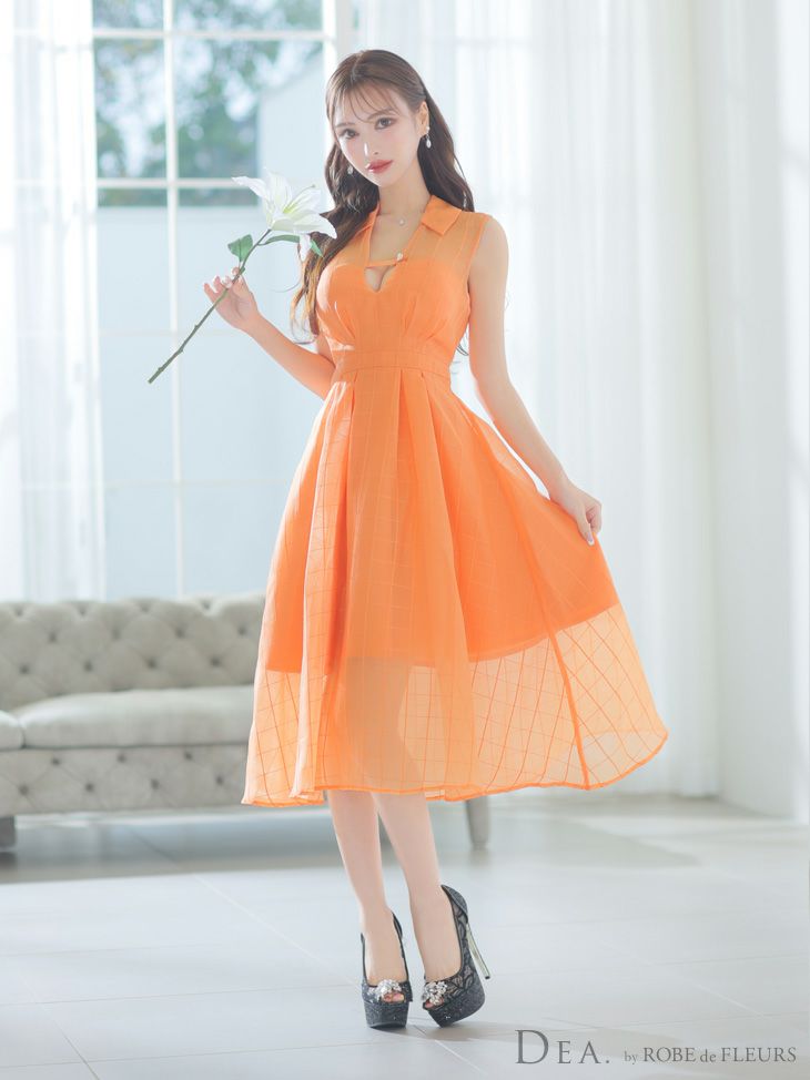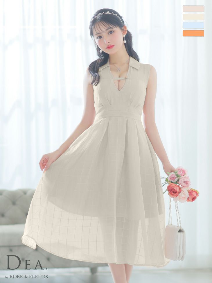 上品な襟付きデザイン☆ [DEA.byROBEdeFLEURS/ディアバイローブドフルール] 高級 ノースリーブ 襟付き バストカット チェック柄 谷間魅せ Aラインロングドレス