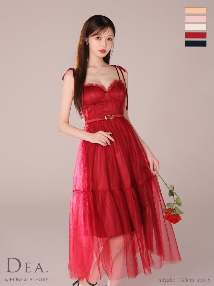 5. [DEA.byROBEdeFLEURS/ディアバイローブドフルール] 高級 ブランド Aラインロングドレス キャミソール ウエストベルト ショルダーリボン チュール