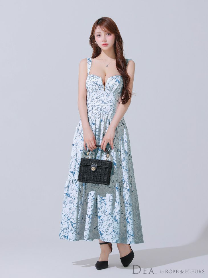 4. [DEA.byROBEdeFLEURS/ディアバイローブドフルール] 高級 ブランド ワンピース Aラインロングドレス キャミソール ジップ 花柄