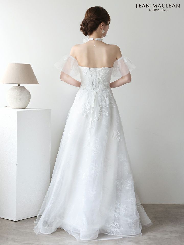 4. [JEANMACLEAN/ジャンマクレーン] 高級 バースデー チョーカー パフスリーブ付き ベア フラワー刺繍 レース バストシースルー Aラインロングドレス