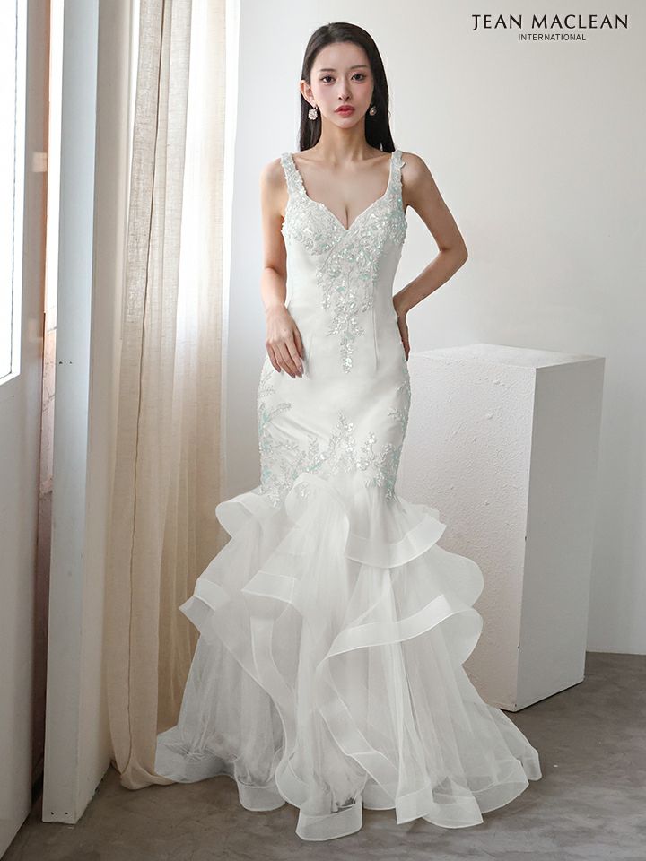 4. [JEANMACLEAN/ジャンマクレーン] 高級 ブランド バースデー Aラインロングドレス マーメイド 谷間 キャミソール 刺繍デザイン フリル チュール