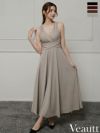 4. [Veautt/ヴュート] 高級 Aラインロングドレス 谷間 シンプル 大人 ノースリーブ 上品 背中魅せ バック ウエストリボン Vカット