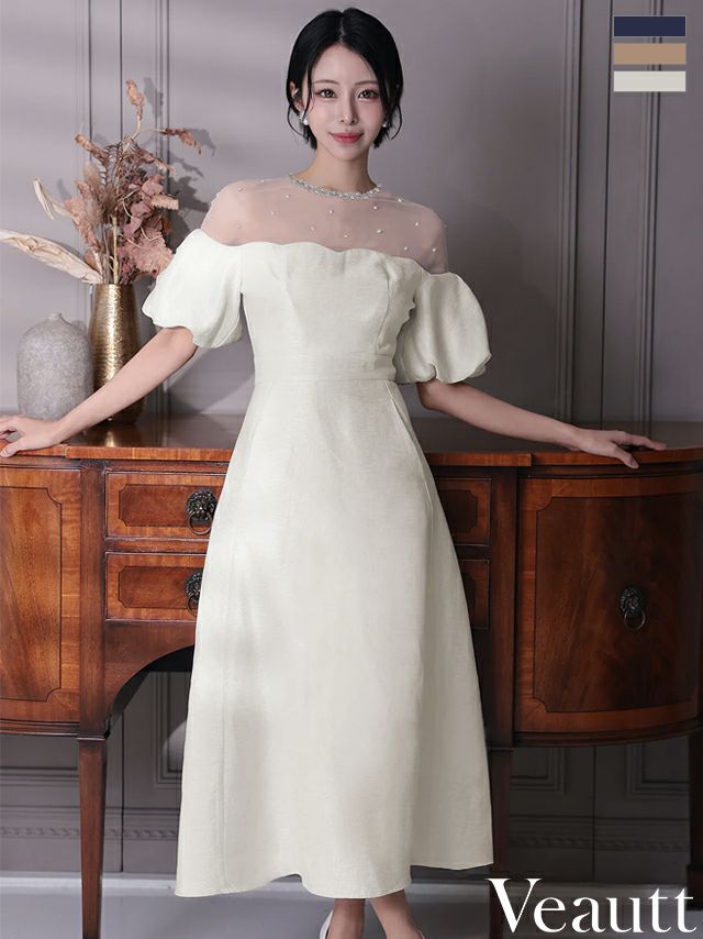他の画像を見る チュールが優雅な印象に♡ [Veautt/ヴュート] 高級 ブランド Aラインロングドレス 背中魅せ シンプル 大人 ノースリーブ 上品 ペプラム チュール ¥ 31,680 税込 お気に入りに追加