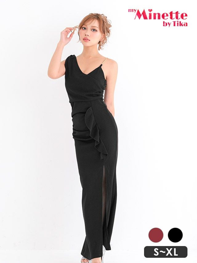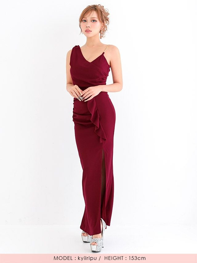 2/18新作★アシメデザインでおしゃれ度UP♪ ロングドレス プチプラ キャミソール ストレッチ セクシー スリット 新人 背中魅せ Aライン 赤ドレス XL ホステス 上品 キャバドレス (きぃぃりぷ着用) [th-ld0571]