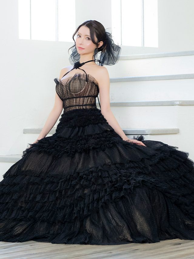 ホルターネックフラワーヌーディードット柄チュール切り替えゴージャスティアードバースデーAラインロングドレスのカラーバリエーション