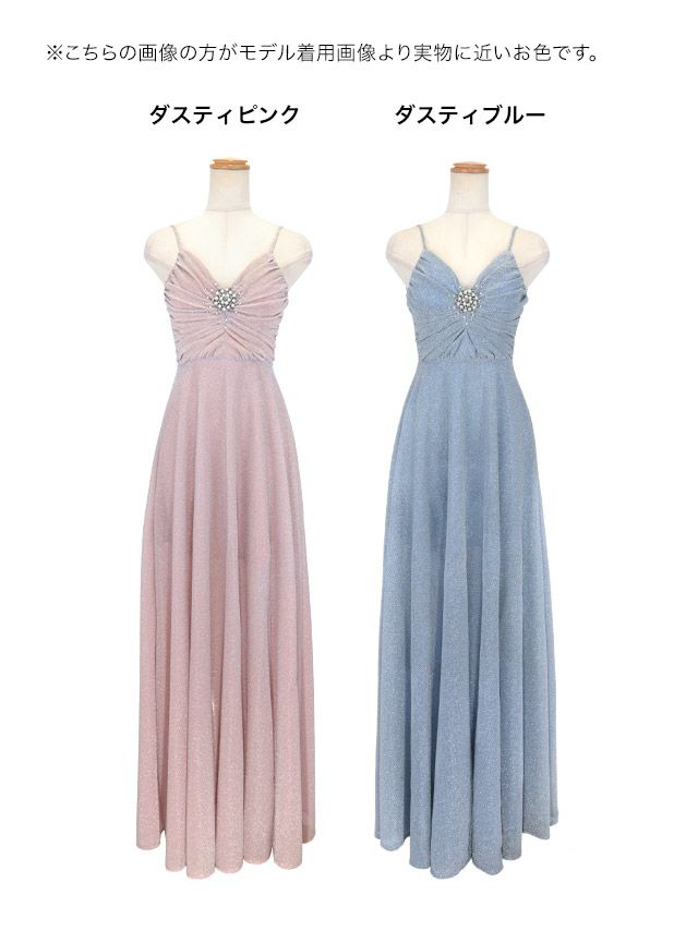 バストギャザービジューキャミソールキラキラグリッターラメスリットAラインロングドレスのカラーバリエーション