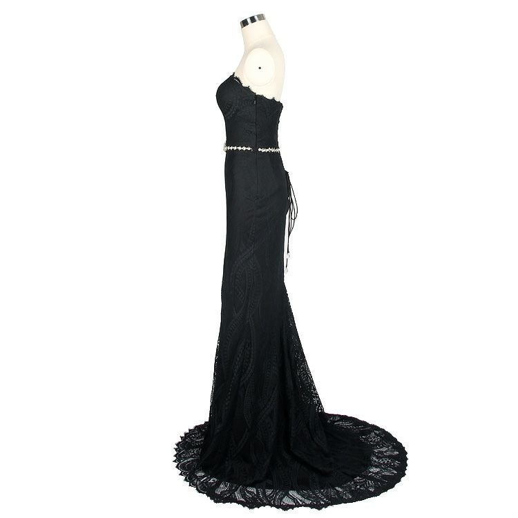 [Angel-R/エンジェルアール] 高級オフショルダーウエストビジュー裾レース切替レース袖マーメイドタイトロングドレス