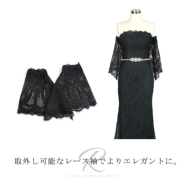 6. [Angel-RPREMIUM/エンジェルアールプレミアム] 高級 バースデーオフショルダーウエストビジュー裾レース切替レース袖マーメイドタイトロングドレス