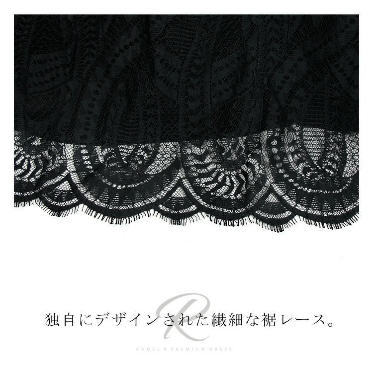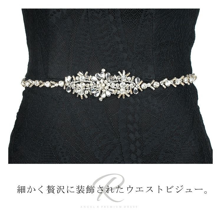5. [Angel-RPREMIUM/エンジェルアールプレミアム] 高級 バースデーオフショルダーウエストビジュー裾レース切替レース袖マーメイドタイトロングドレス