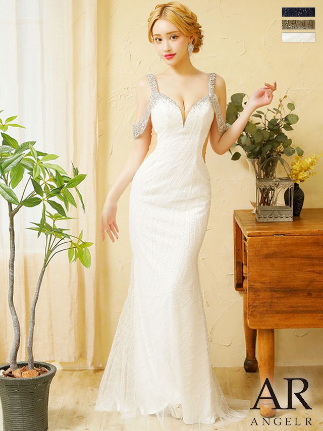 4. [Angel-RPREMIUM/エンジェルアールプレミアム] 高級 バースデー肩出し 二の腕カバービジューマーメイドタイトロングドレス