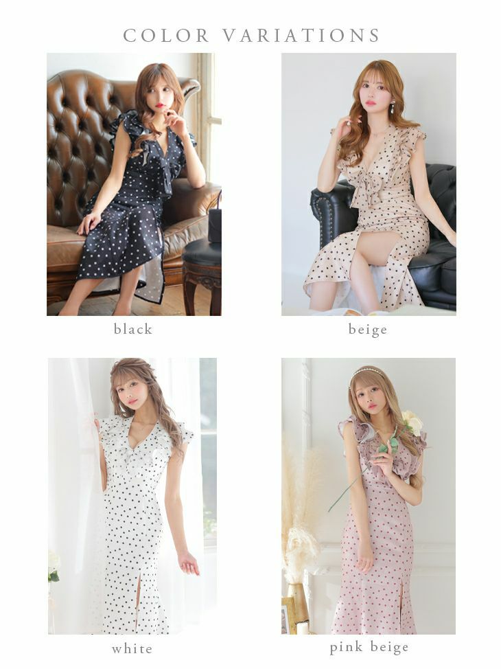 甘くてセクシーなロングドレス♡ SALE [DEA.byROBEdeFLEURS/ディアバイローブドフルール] 高級フリル袖フロントリボンドット柄マーメイドノースリーブワンピースタイトロングドレス