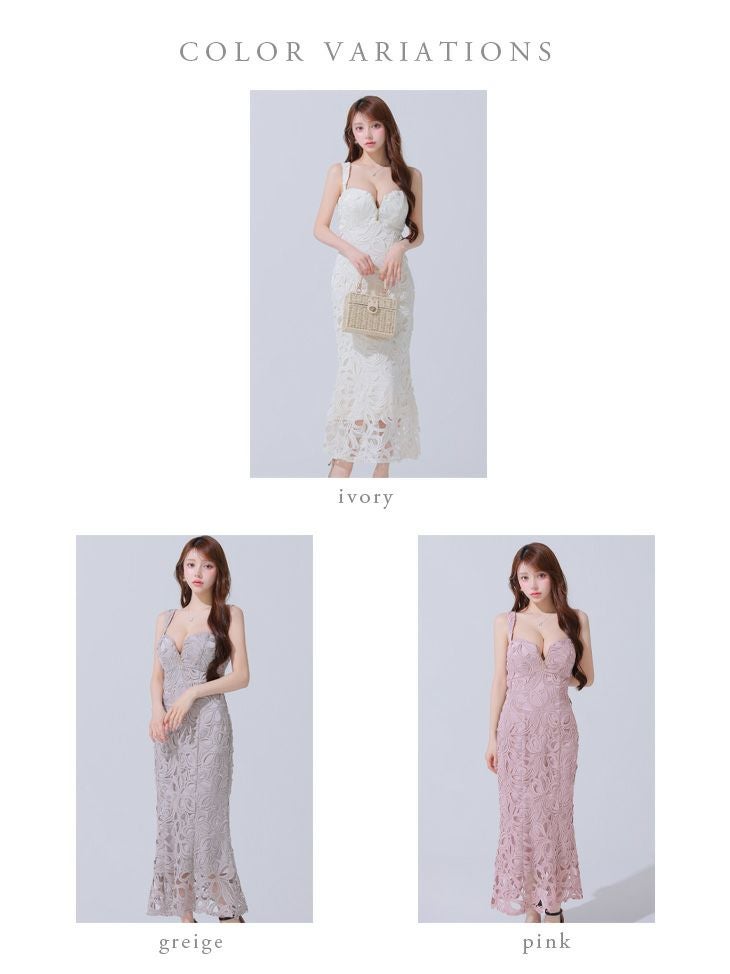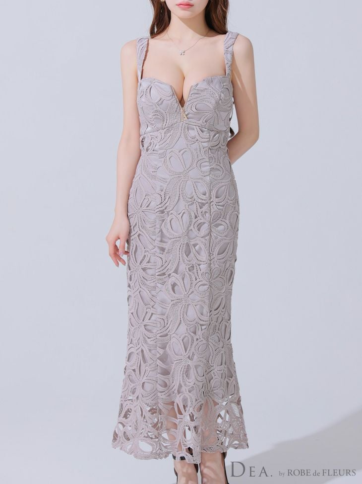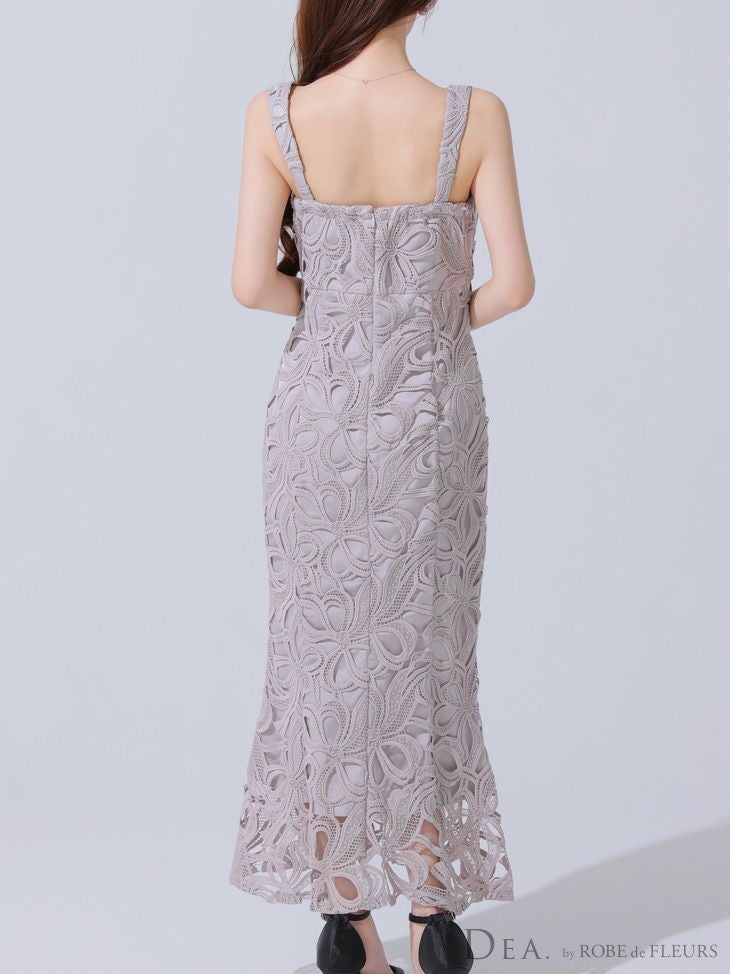 今っぽいカラーでトレンド感抜群♡ [DEA.byROBEdeFLEURS/ディアバイローブドフルール] 高級 キャミソール ケミカルレース ジップ ワンカラー マーメイドロングドレス