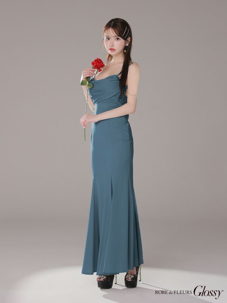 5. [ROBEdeFLEURSGlossy/ローブドフルールグロッシー] 高級キャミソールビジューチェーンサテンマーメイドタイトロングドレス