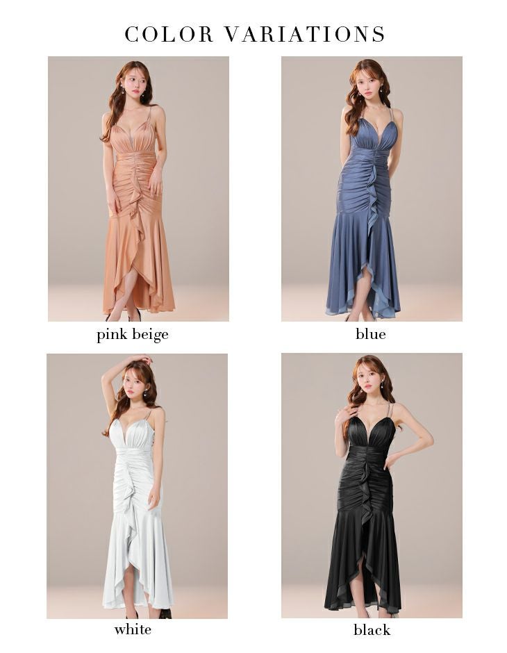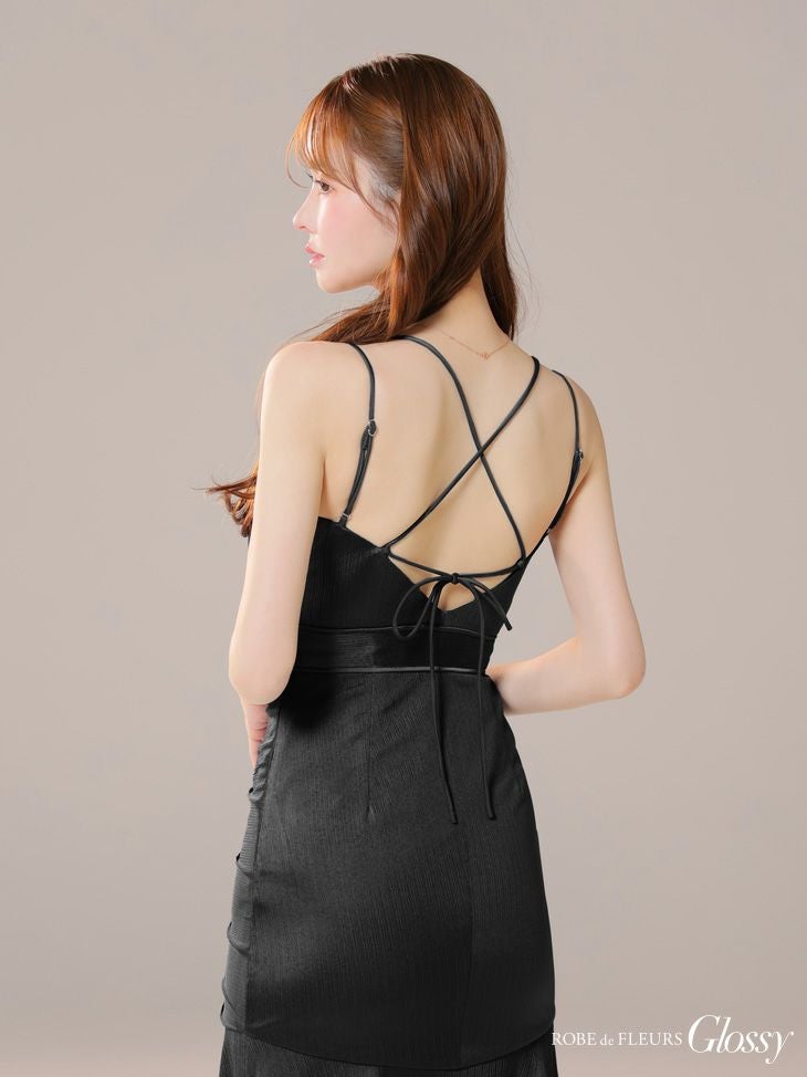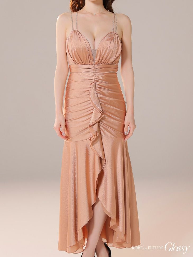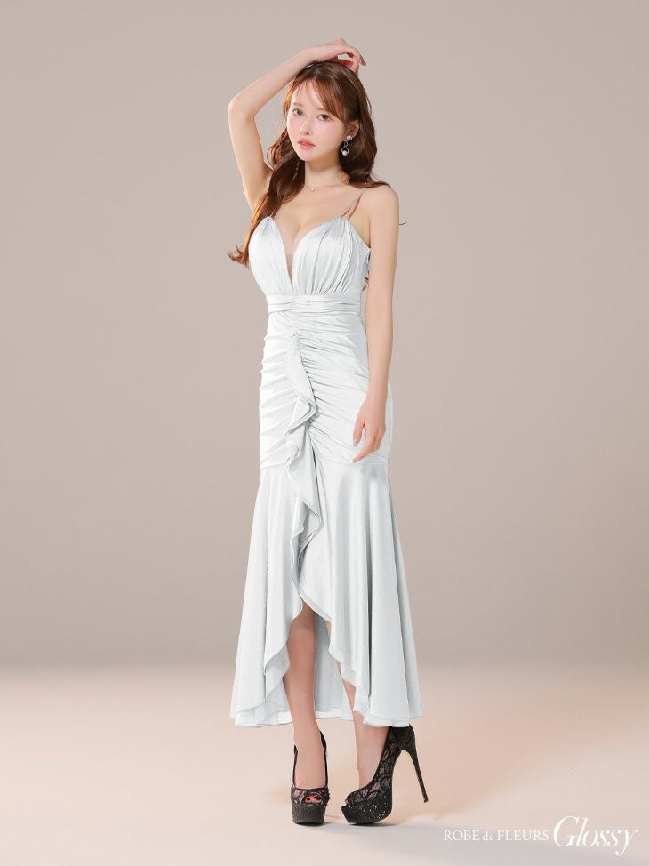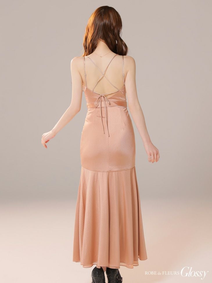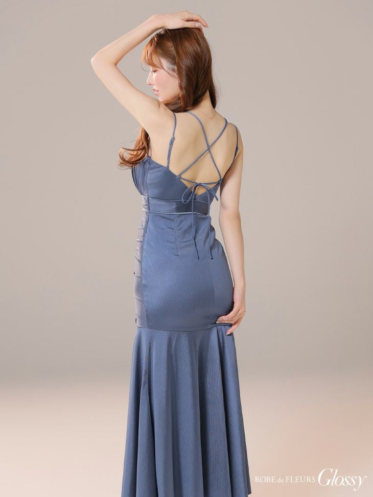 洗練されたシンプルデザイン♡ [ROBEdeFLEURSGlossy/ローブドフルールグロッシー] 高級 ブランド タイトロングドレス 谷間 マーメイド キャミソール 背中魅せ サテン バストシースルー ギャザー