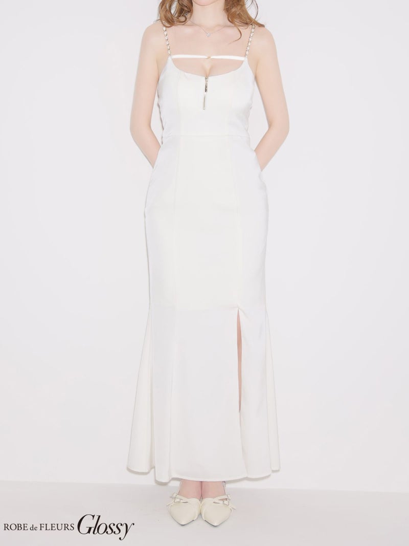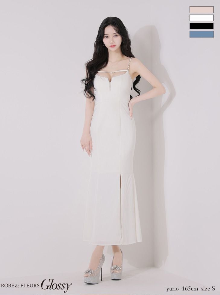 4. [ROBEdeFLEURSGlossy/ローブドフルールグロッシー] 高級 ブランド ロングドレス マーメイド 谷間 キャミソール チェーン ジップ バストコード 背中魅せ サテン スリット