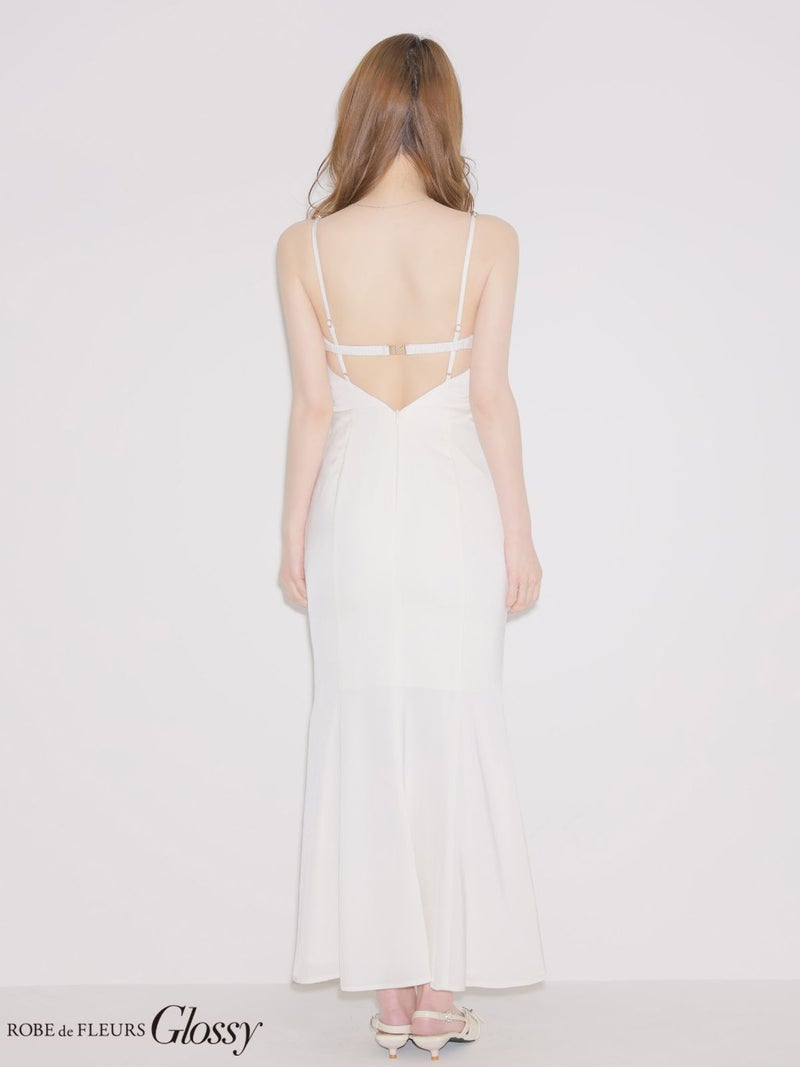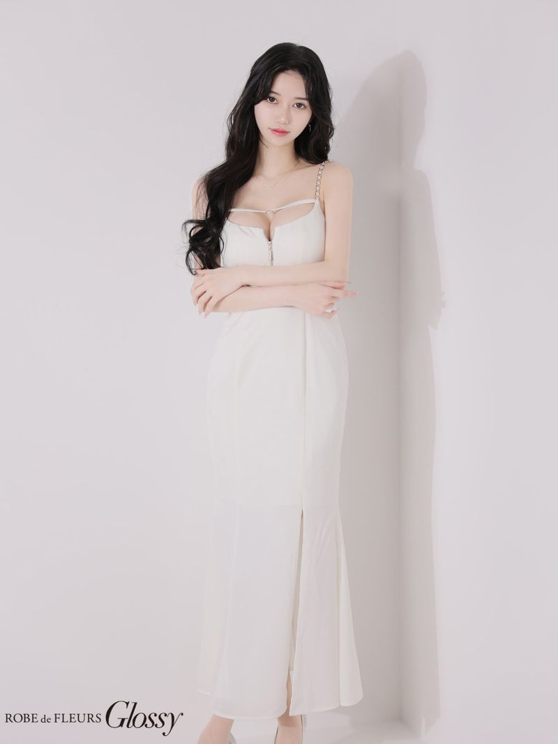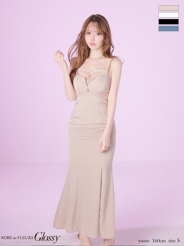 4. [ROBEdeFLEURSGlossy/ローブドフルールグロッシー] 高級 ブランド ロングドレス マーメイド 谷間 キャミソール チェーン ジップ バストコード 背中魅せ サテン スリット