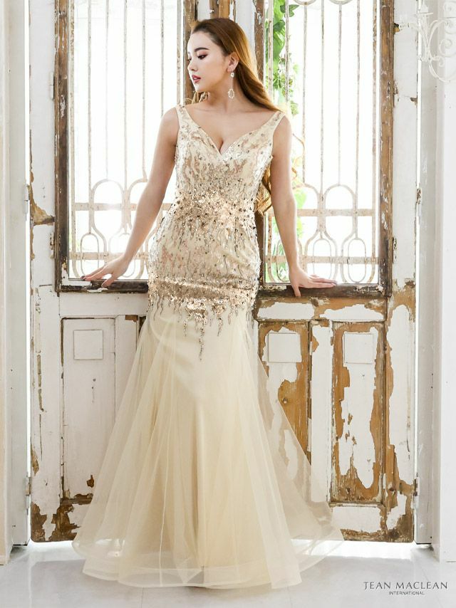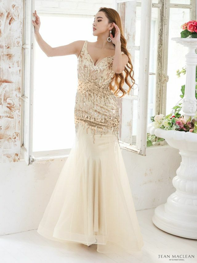 JEANMACLEAN ジャンマクレーン 高級スパンコールデザインチュールマーメイドノースリーブロングバースデードレス