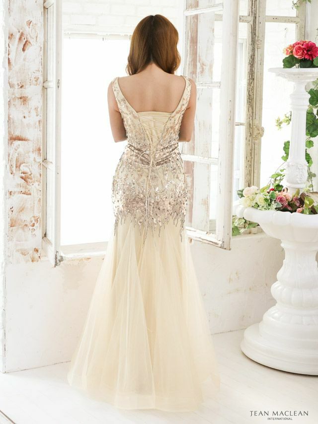 4. [JEANMACLEAN/ジャンマクレーン] 高級 バースデースパンコールデザインチュールノースリーブマーメイドロングドレス