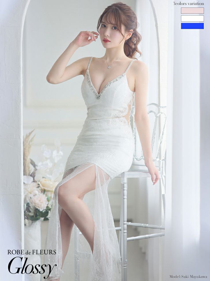 3. SALE [ROBEdeFLEURSGlossy/ローブドフルールグロッシー] 高級スパンコールレースバストビジューアウトキャミソールくびれタイトロングドレス