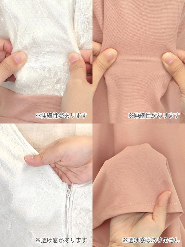 3. [SALE] クロスネック フラワーレース 半袖 バストジップ サイドフリル バイカラー タイトロングドレス (Sサイズ~XXXLサイズ) (せいせい/キャバドレス着用)