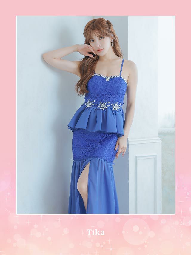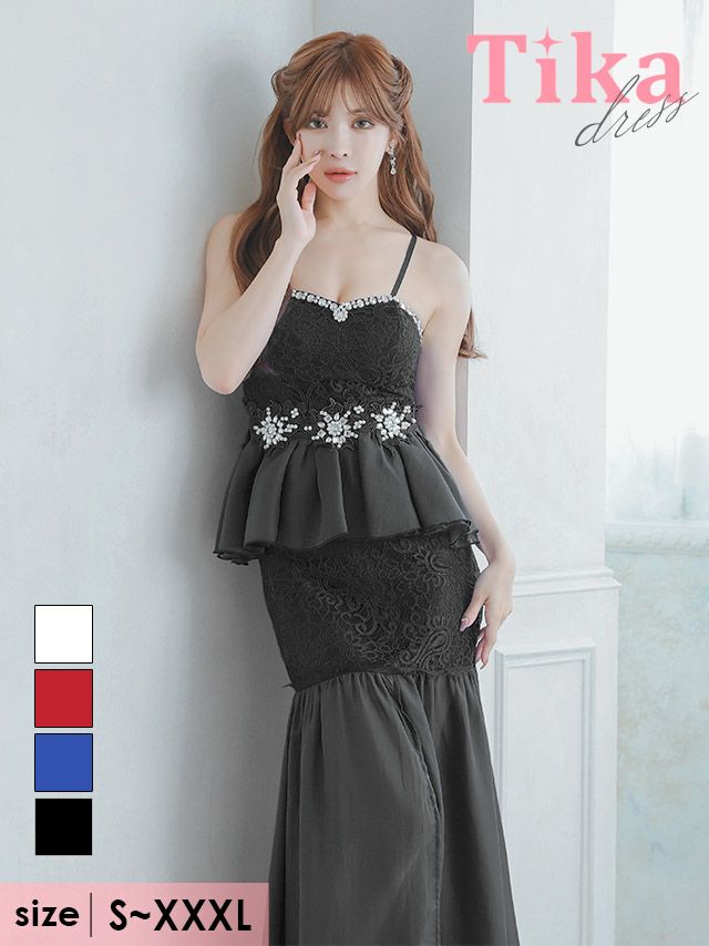 3. キャミソールレースビジューペプラムマーメイドシフォンタイトロングドレス (Sサイズ~XXXLサイズ) (浦西ひかる/キャバドレス着用)