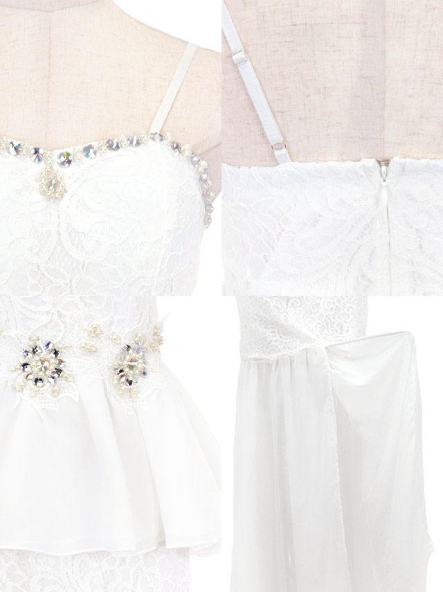 キャミソールレースビジューペプラムマーメイドシフォンタイトロングドレスの商品詳細1