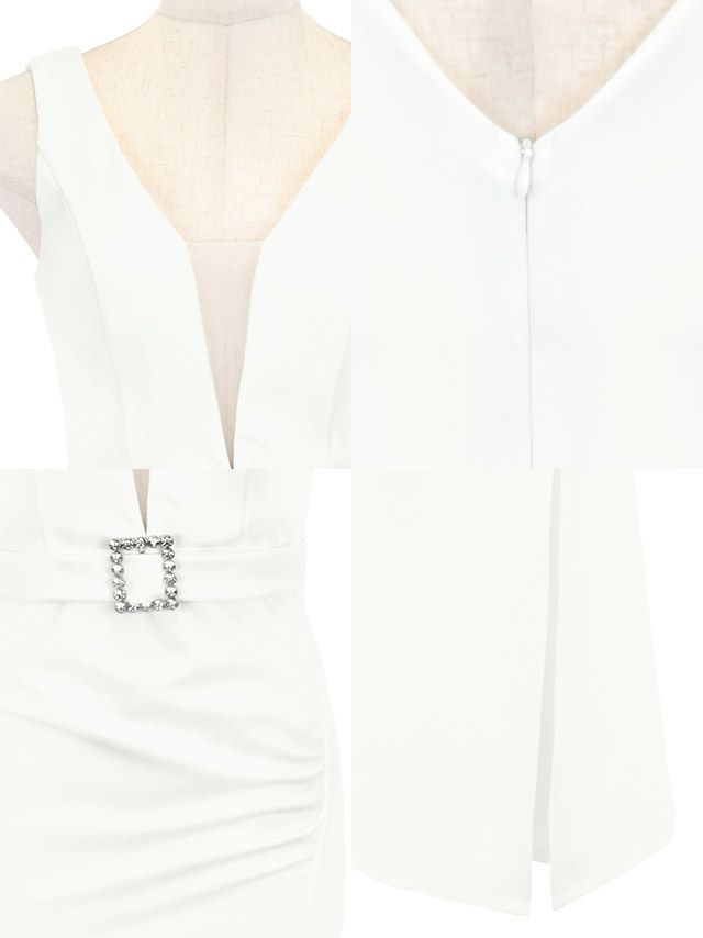ビジューバックルウエストベルト付きバストシアーノースリーブストレッチスリットタイトロングドレスの商品特徴