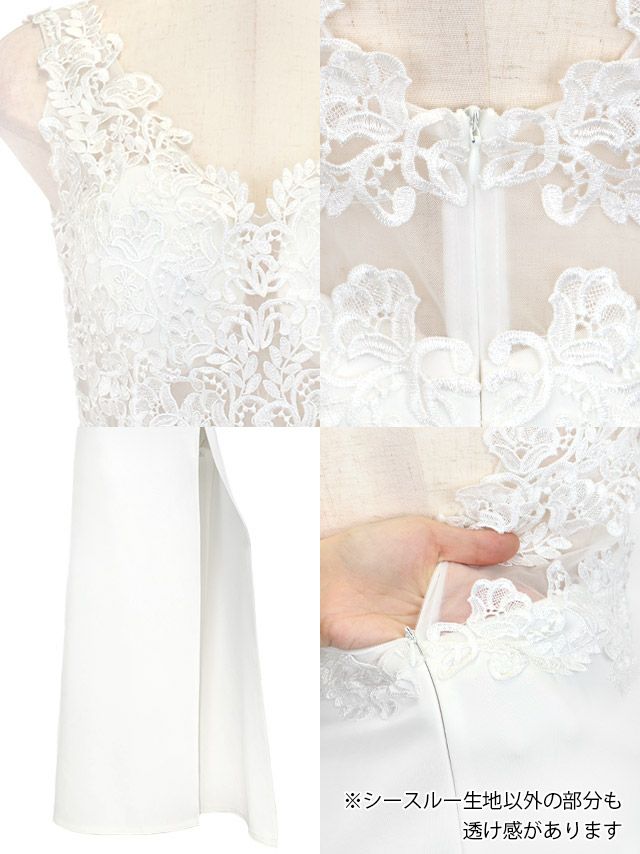 4. タイト ロングドレス 谷間 シンプル 大きいサイズ レース 大人 スリット ノースリーブ 背中魅せ ストレッチ (みりちゃむ着用)