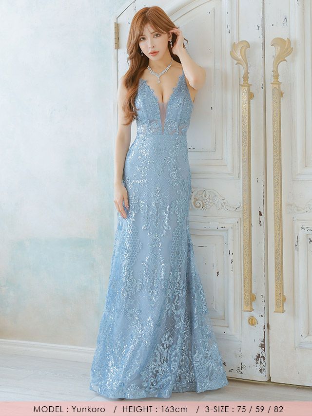 5. バースデー タイト ロングドレス 谷間 レース 大人 背中魅せ マーメイド キャミソール バストシースルー スパンコール ラメ (PyunA.着用)
