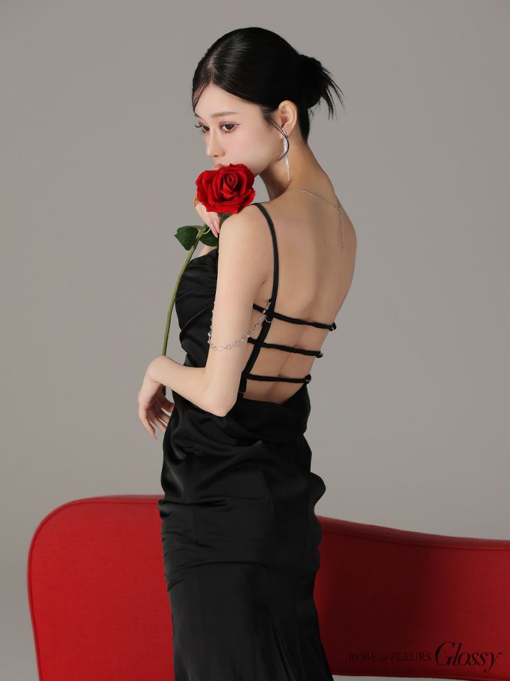 背中を大胆に露出したデザインは、バックスタイルもセクシーに360度色気をアピールできます。上半身をスッキリ見せることで全体のバランスも良く、去り際も美しく印象的な女性に演出してくれます。