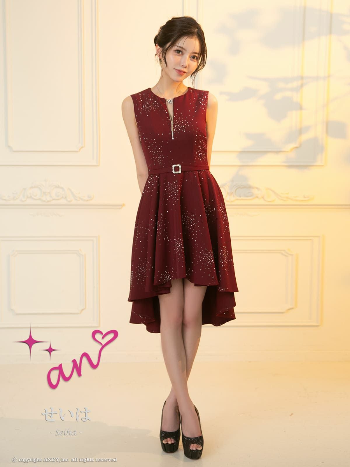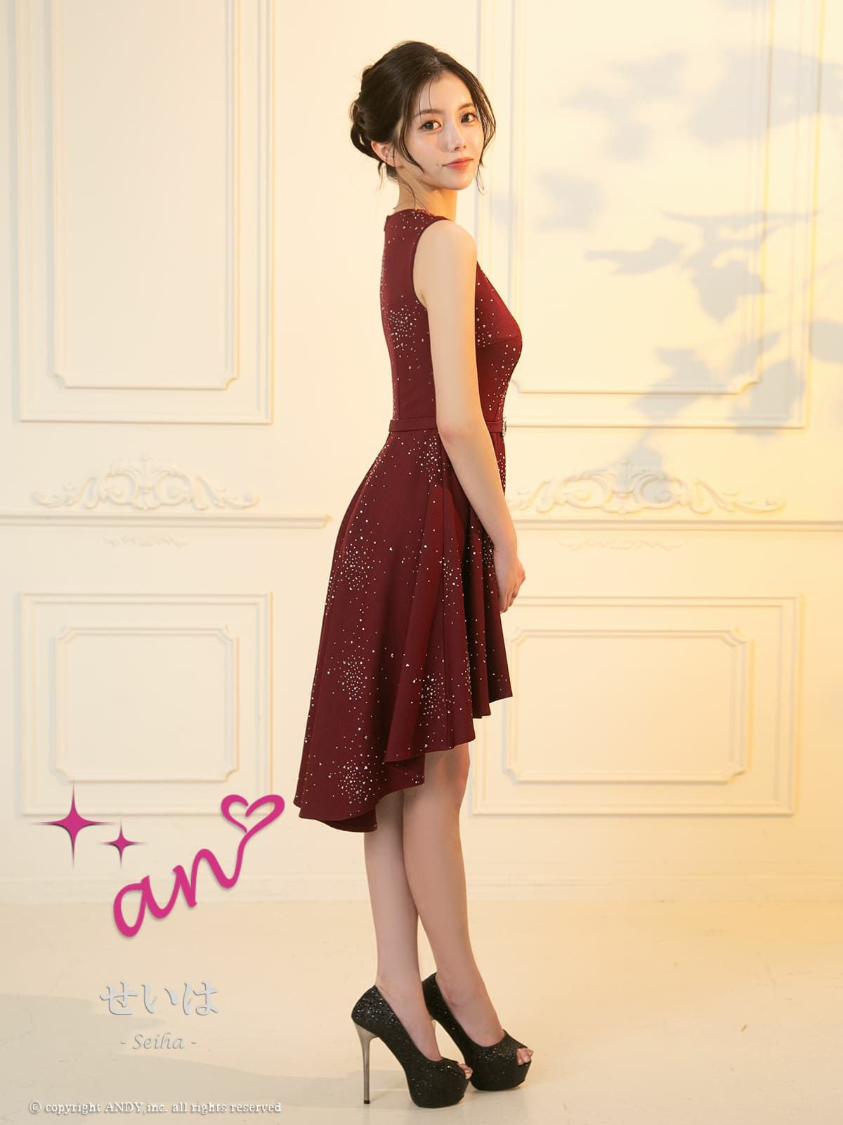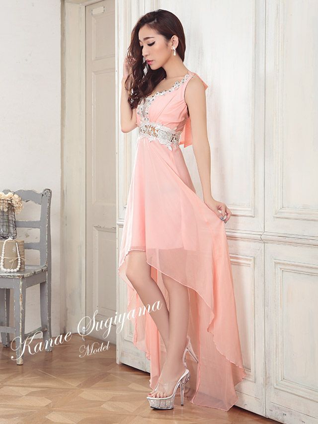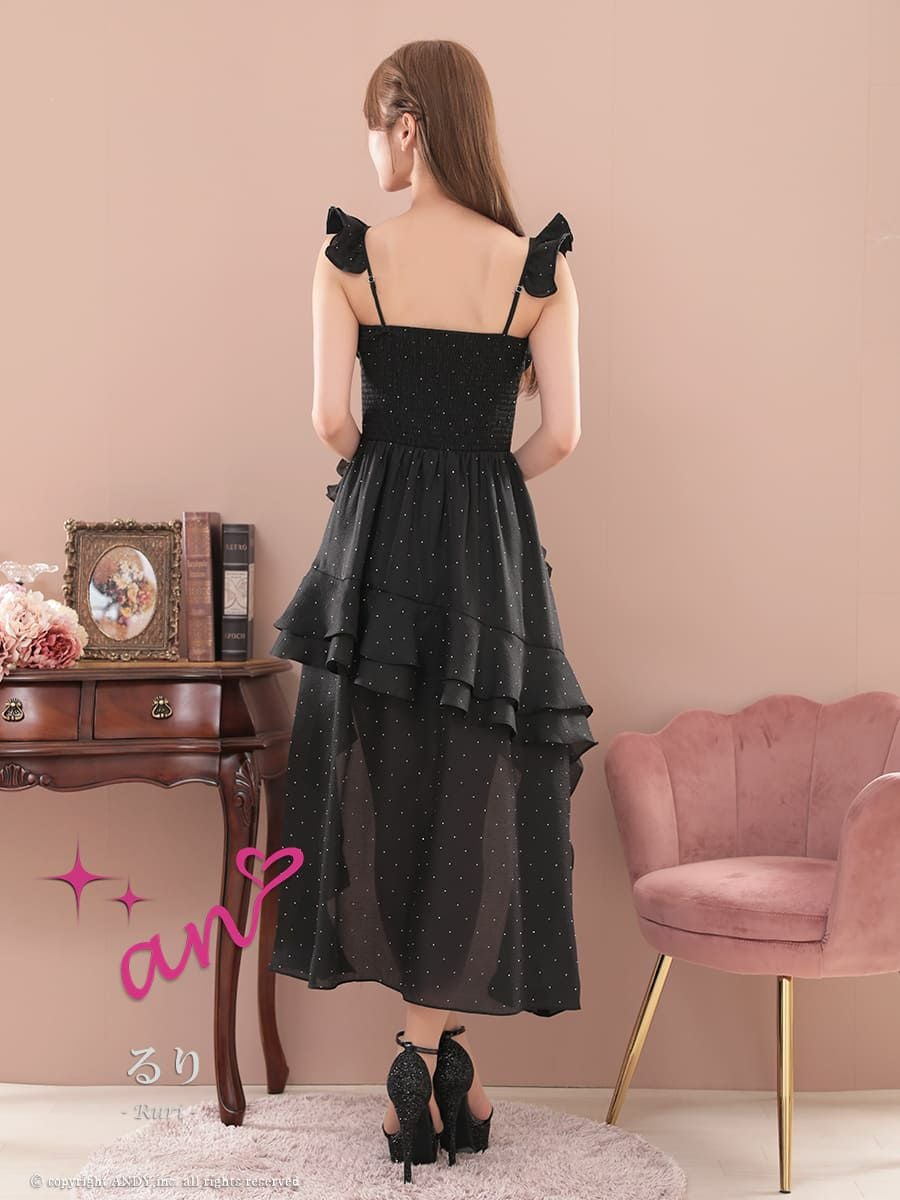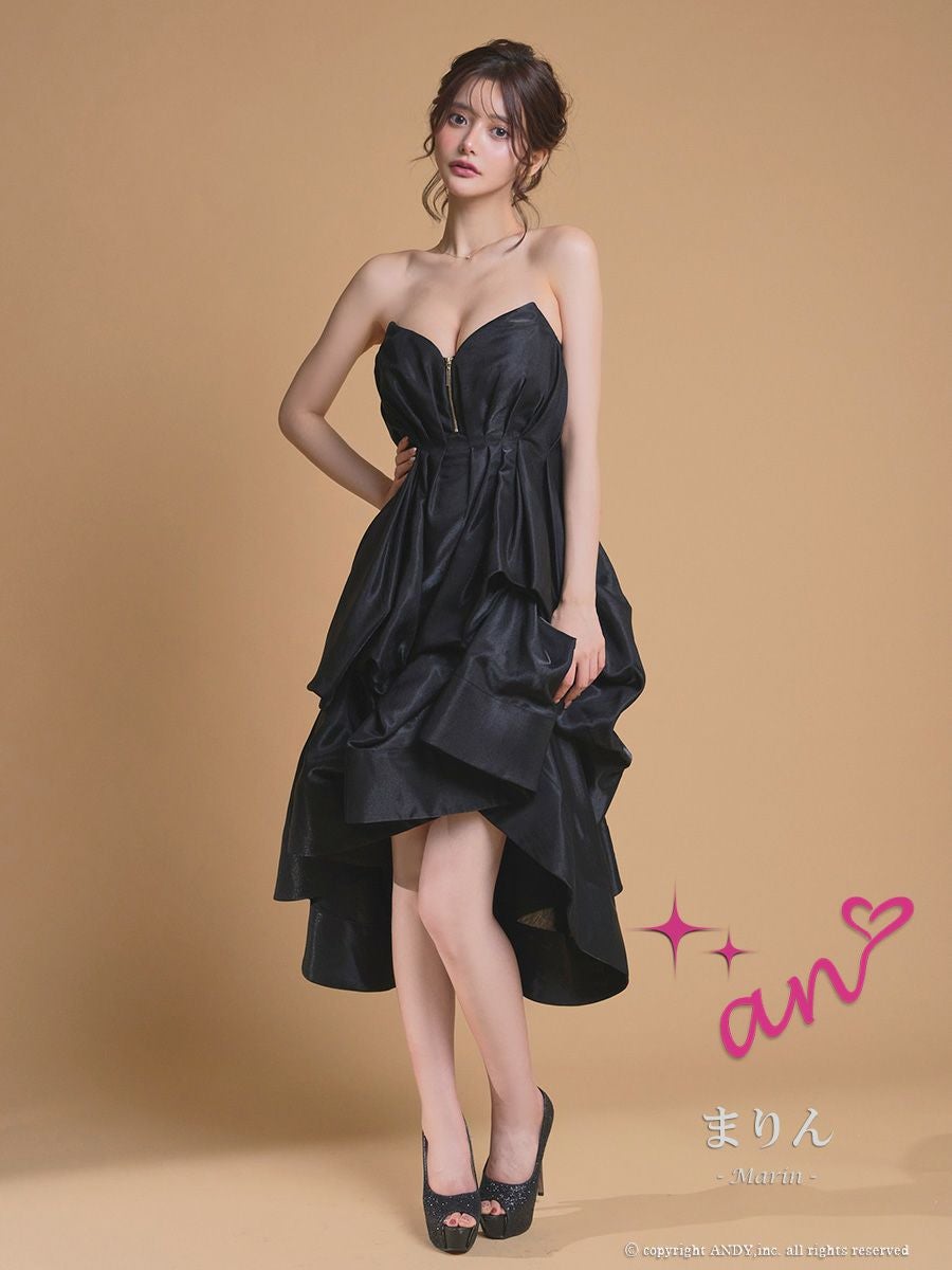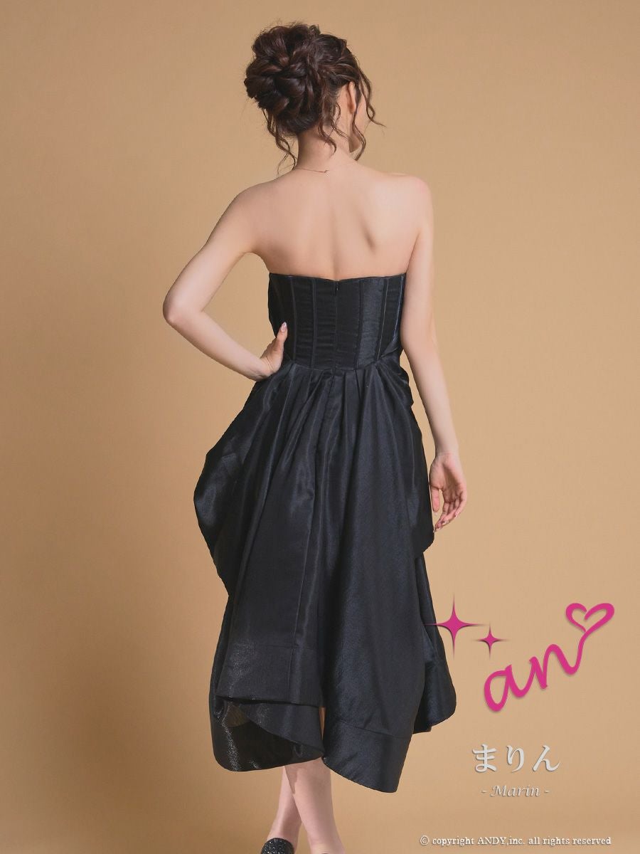 高級感があり前丈は短く後丈が長いデザインのドレスです。エレガントで上品な印象を与え、華やかさも兼ね備えたキャバドレスで、バースデーなどのイベントにぴったりです♪美脚効果が抜群で、ロングドレスは引きずってしまう、、お悩みをもつ身長が低い方に特におすすめです★