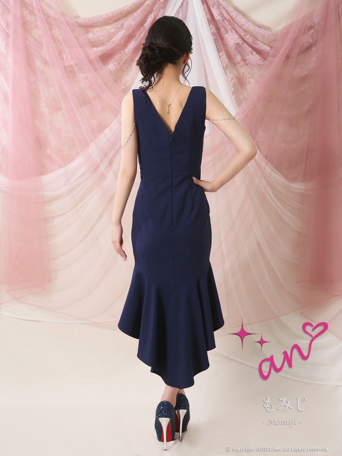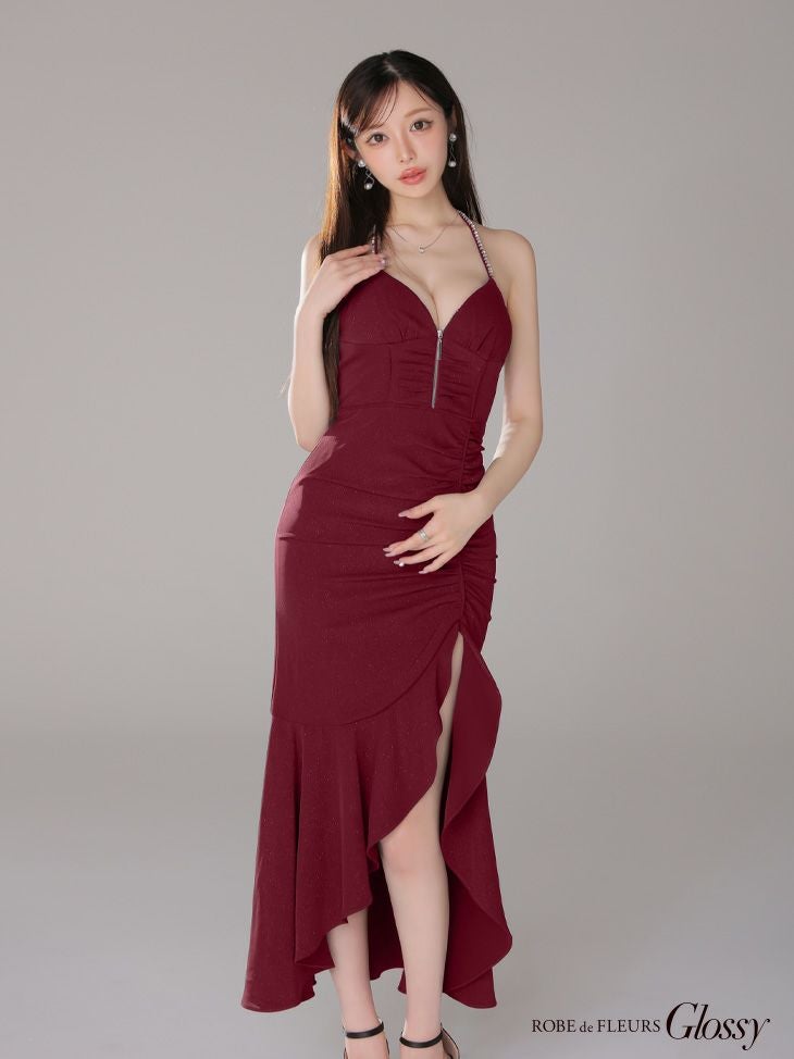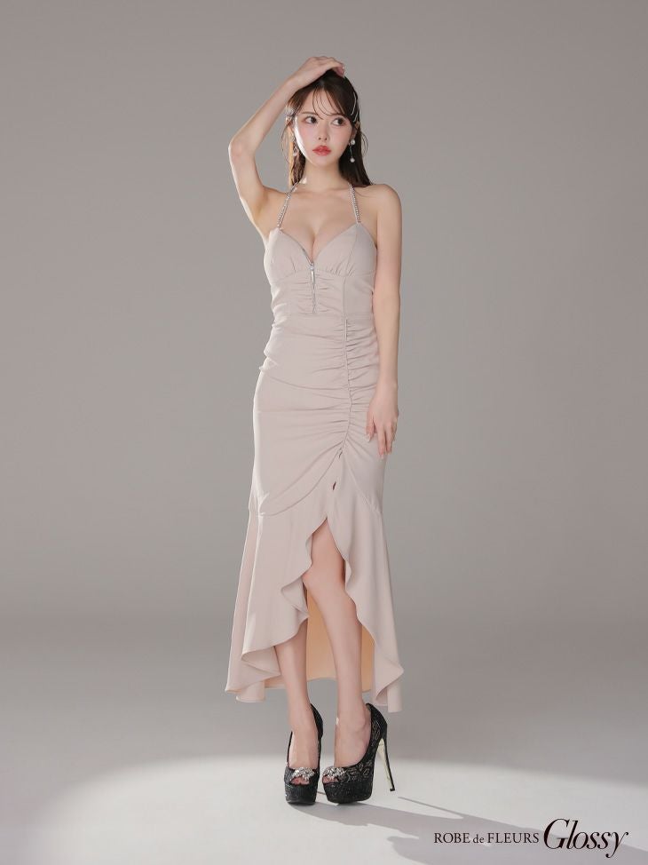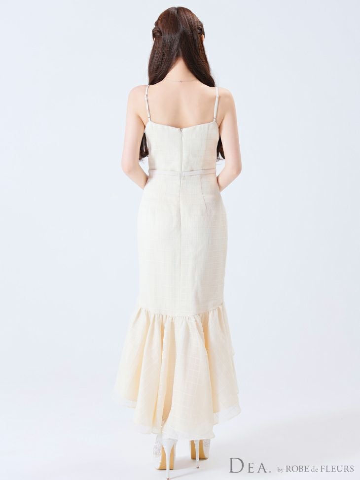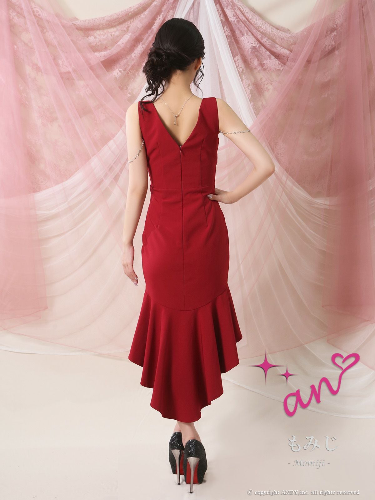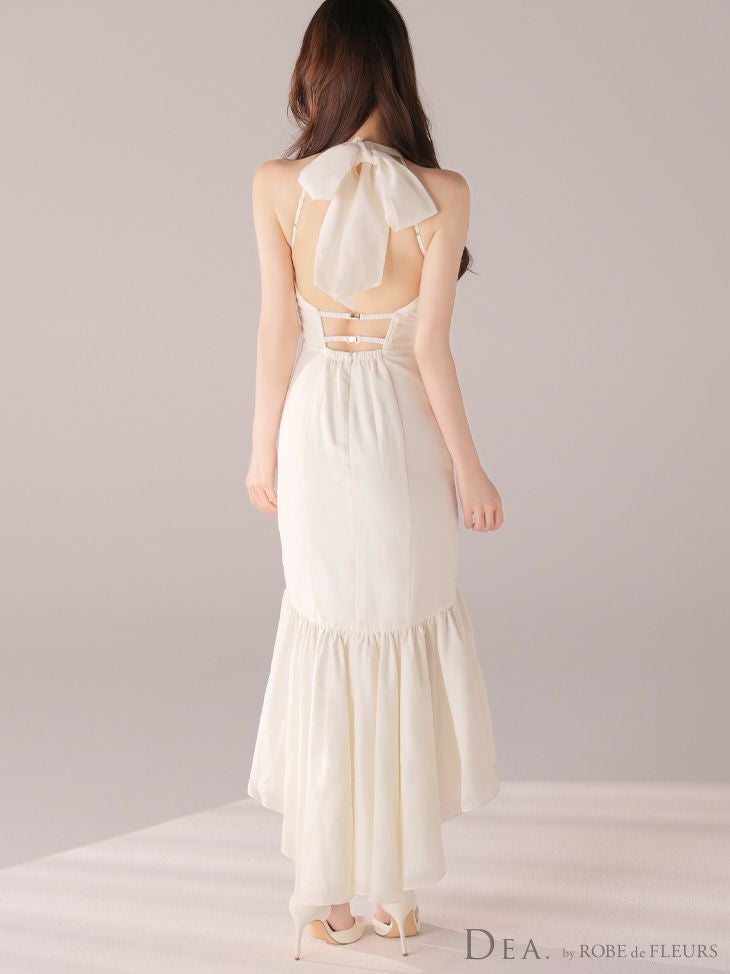 あなたのそんな願いを、フィッシュテール(ロングテール)という、フロントの裾よりもバックの裾の方が長く、魚の尾ビレのような揺らめきのシルエットをもつドレスが叶えてくれます♪ 動きに合わせて揺れるスカートがとてもドラマチックで、みんなの視線を集める事間違いなし◎ 体型カバー力も抜群なので、下半身の大きさや太さが気になる方にも是非着用して頂きたいデザインです。 足元が見えるので、あなたのこだわりのネイルを魅せたり、差し色になるカラーのものやデザイン性のあるものなどお気に入りのシューズを履いてもGOOD!
