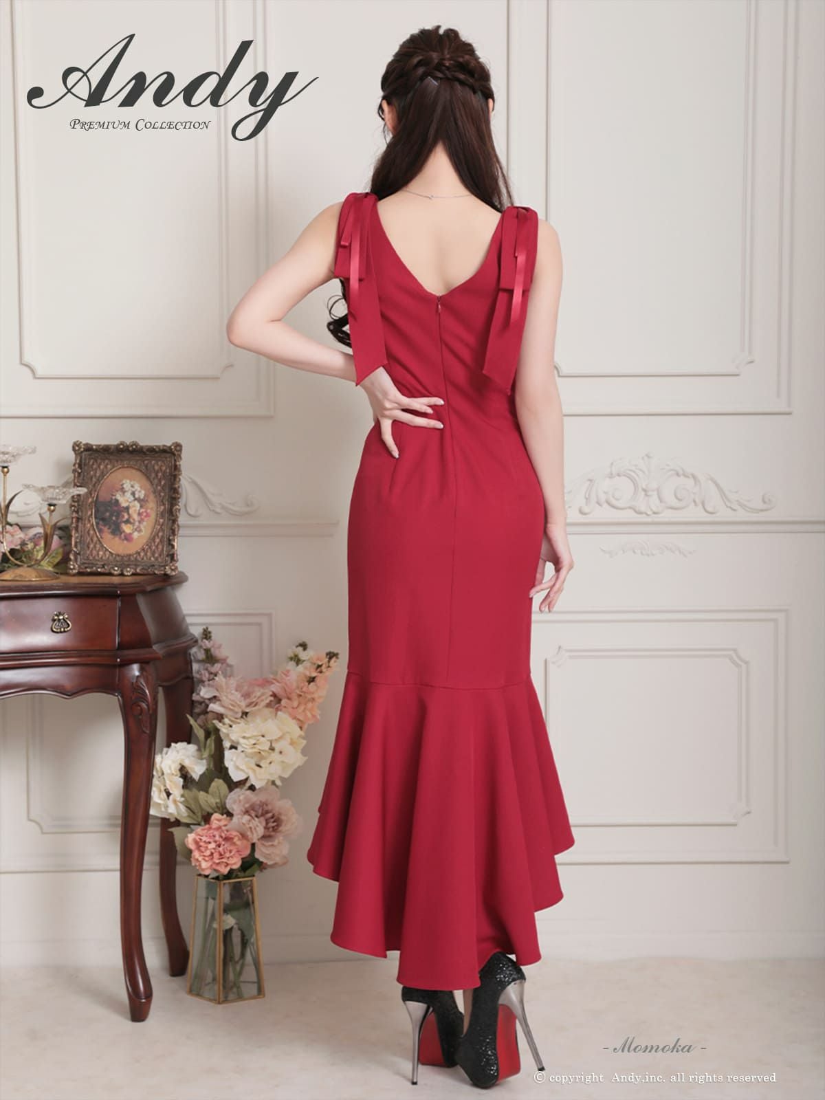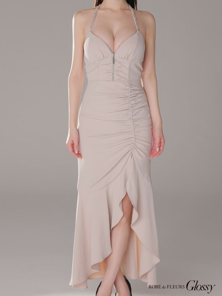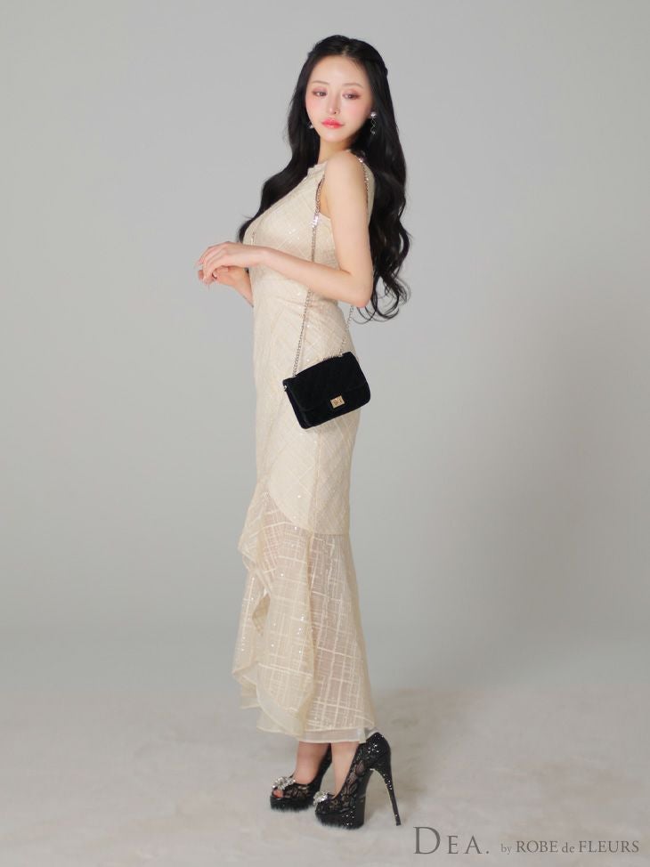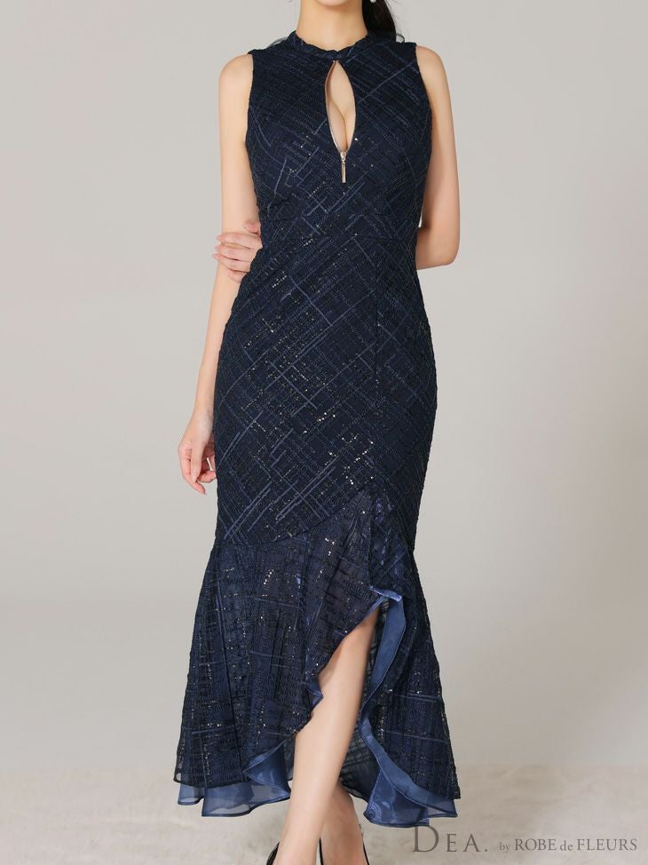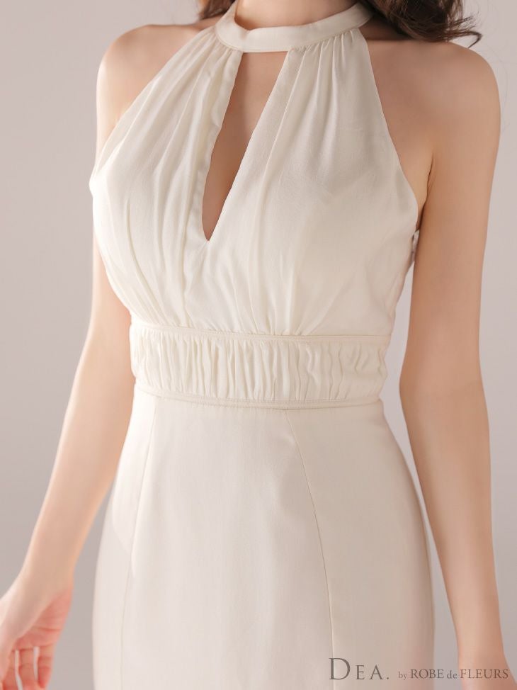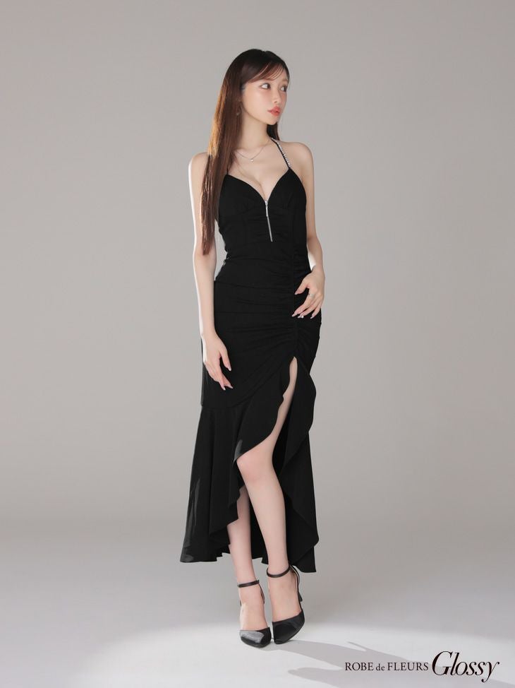 あなたのそんな願いを、フィッシュテール(ロングテール)という、フロントの裾よりもバックの裾の方が長く、魚の尾ビレのような揺らめきのシルエットをもつドレスが叶えてくれます♪ 動きに合わせて揺れるスカートがとてもドラマチックで、みんなの視線を集める事間違いなし◎ 体型カバー力も抜群なので、下半身の大きさや太さが気になる方にも是非着用して頂きたいデザインです。 足元が見えるので、あなたのこだわりのネイルを魅せたり、差し色になるカラーのものやデザイン性のあるものなどお気に入りのシューズを履いてもGOOD!