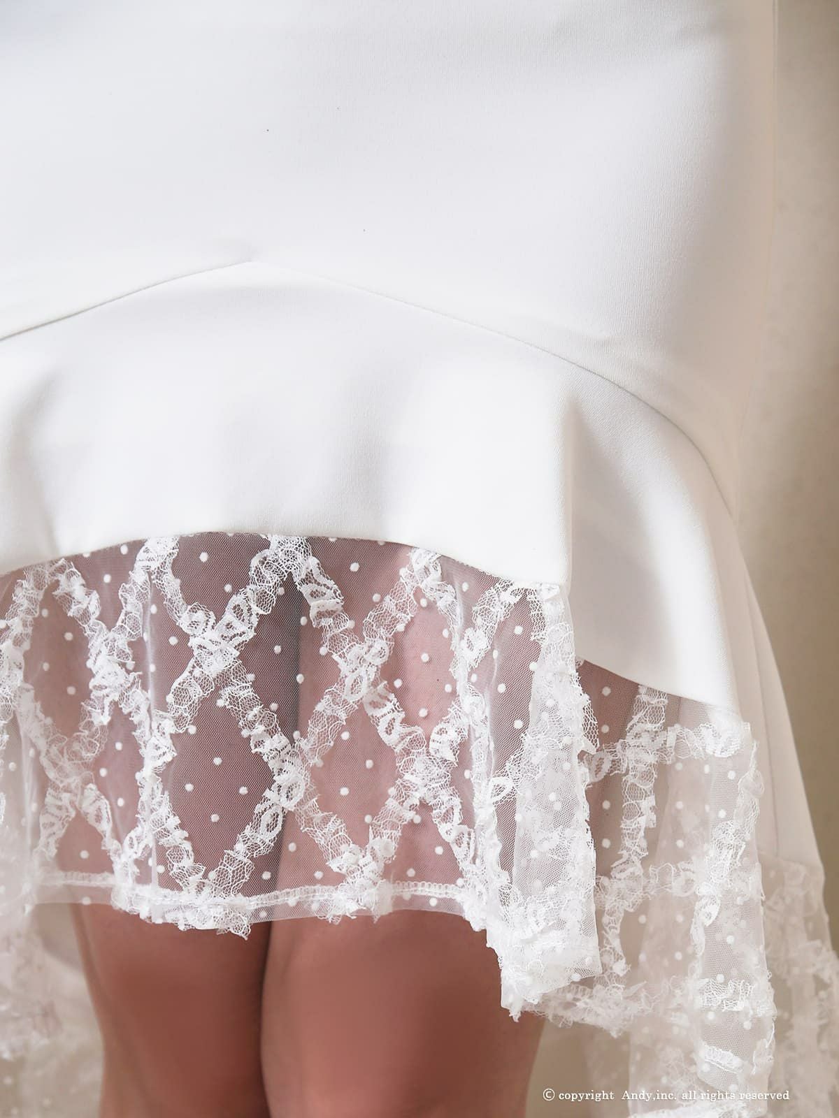 ミニ丈のフィッシュテールはフロントとバックの差が大きくつけられるので、着るだけでゴージャスな印象に。 バックから見たら大人っぽく、フロントから見るとちょっぴりSEXY感があり、女っぽさをアップできちゃう丈感でギャップ萌えさせちゃいましょう。 主役級に輝きたい時にもぴったり♪
