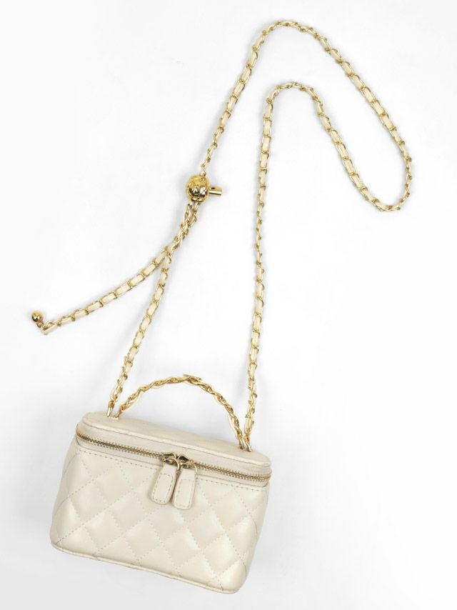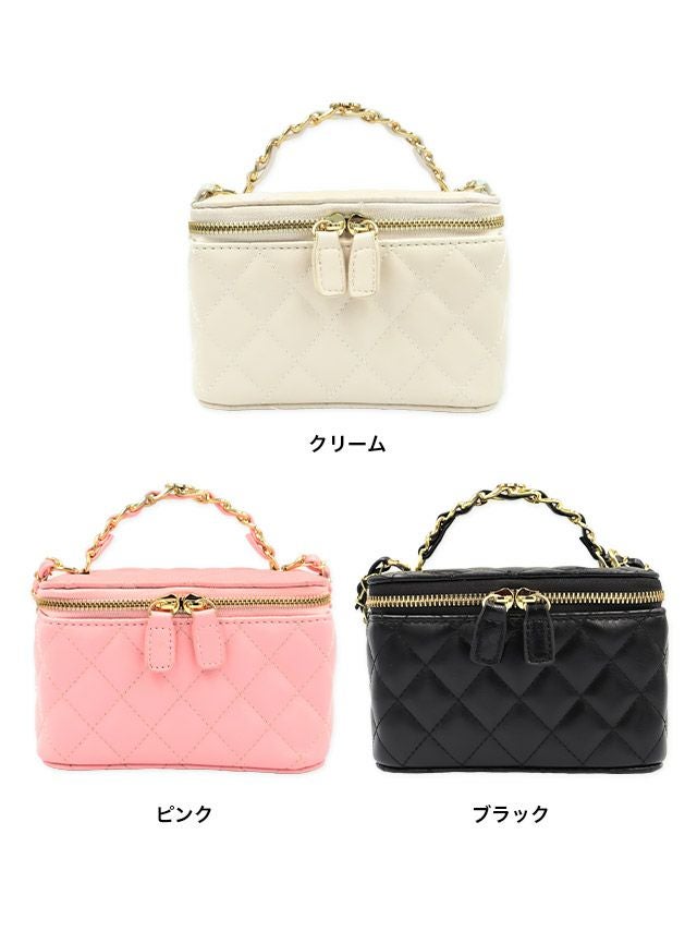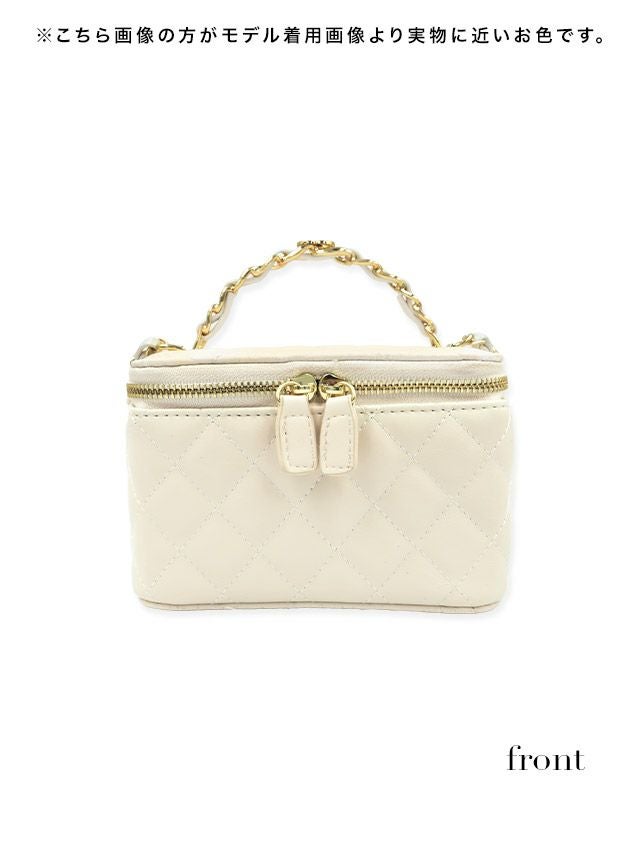 取り外し可能ショルダーチェーン付き♪ ショルダーチェーン付きキルティングバニティ2Wayミニバッグ