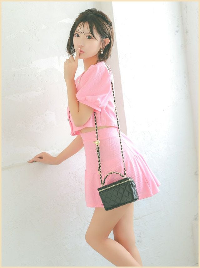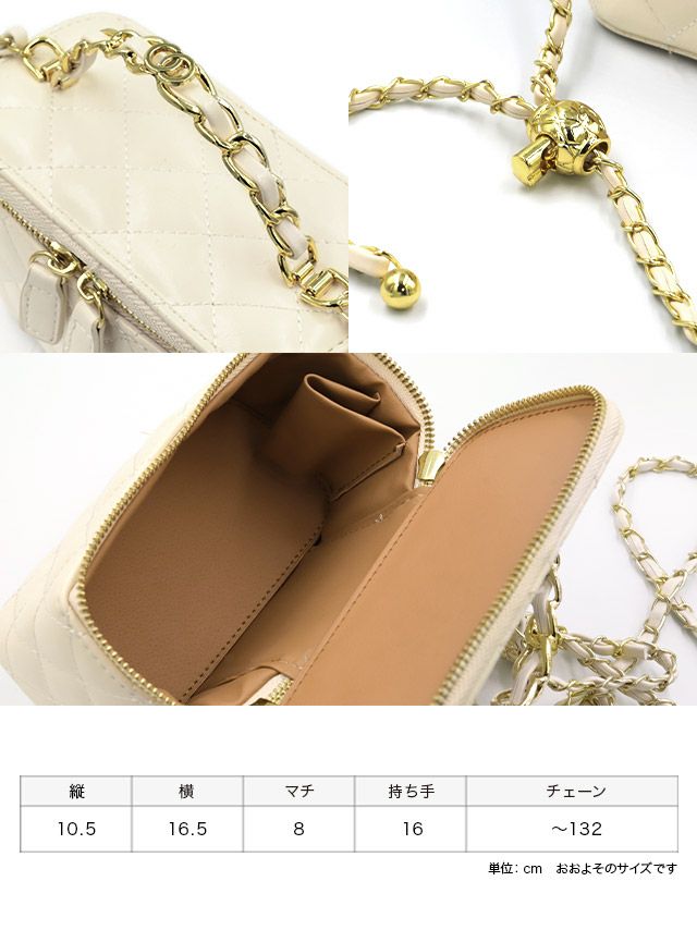 ショルダーチェーン付きキルティングバニティ2Wayミニバッグのディティール サイズ表
