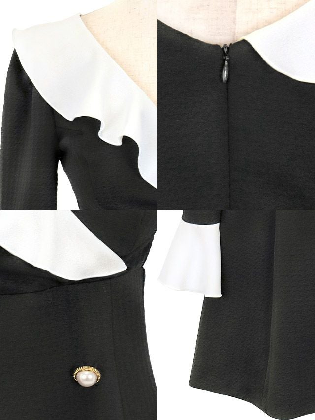 お洒落なフレンチガーリードレス♪ [韓国ドレス] 長袖 袖ありカシュクールアシメフリルダブルボタンモノトーンフレアミニドレス (Sサイズ~Lサイズ) (重川茉弥/キャバドレス着用)