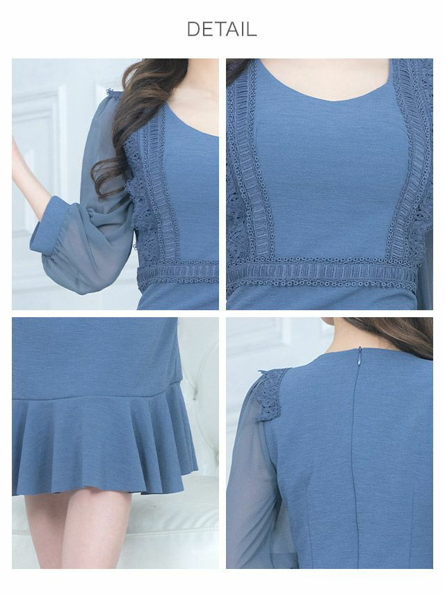 レースふんわりシアー袖ありギャザー裾フリル膝丈タイト韓国ドレスのカラーバリエーション