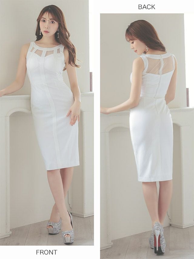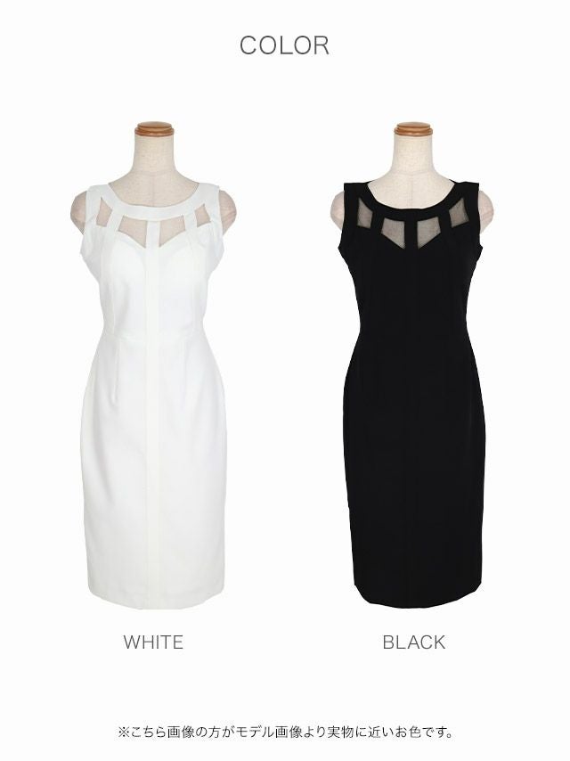 デコルテシースルーワンカラーノースリーブ膝丈タイトドレスのカラーバリエーション